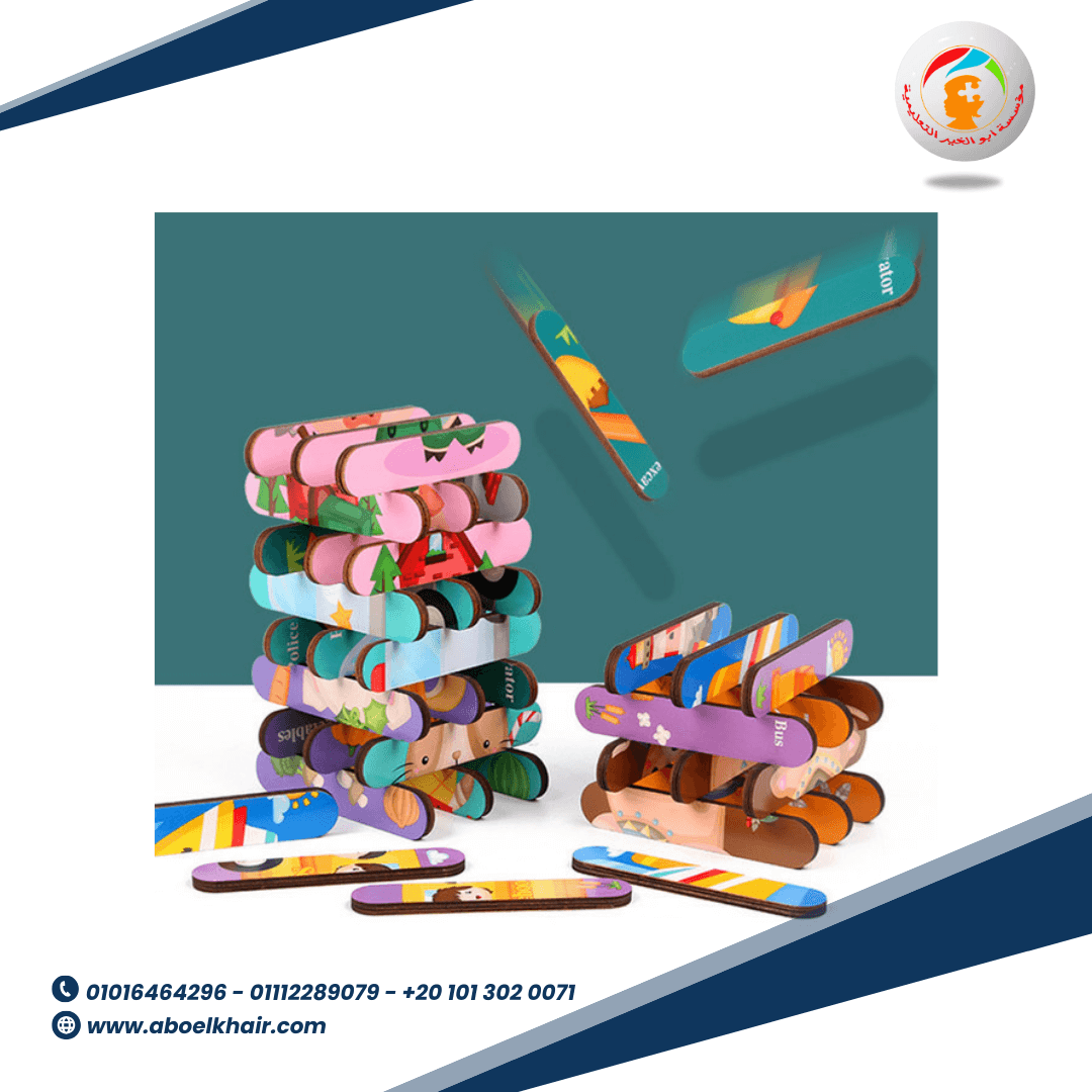 تطابق هندسي 4 عمود بيتم التطابق وفقا لعدد الثقوب فى منتصف الاشكال تستخدم أيضا القطع الخشبية فى تكوين اشكال مختلفة كما موضح فى الصور الوان جذابة لشد انتباه الطفل خشب عالى الجودة