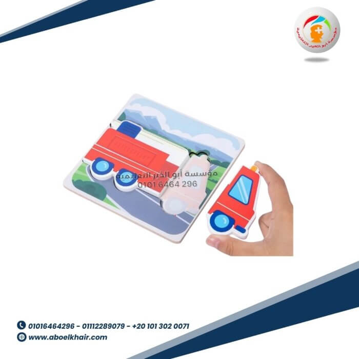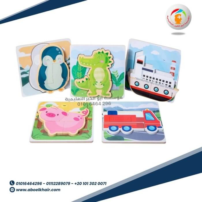عبارة عن كارت خشبي عالى الجودة بها قطع مجسمة بسيطة سهلة التركيب مع بازل حروف بالعربي اسم شكل البازل