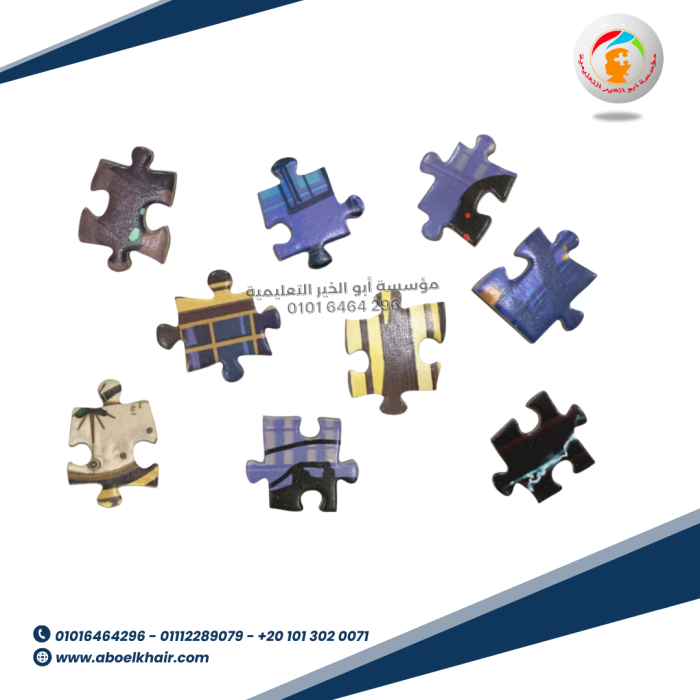 عبارة عن كارت خشبي عالى الجودة بها قطع مجسمة بسيطة سهلة التركيب مع بازل حروف بالعربي اسم شكل البازل