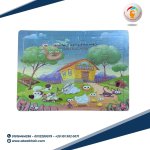 عبارة عن كارت خشبي عالى الجودة بها قطع مجسمة بسيطة سهلة التركيب مع بازل حروف بالعربي اسم شكل البازل