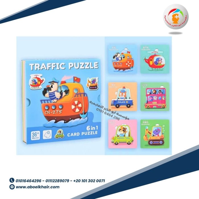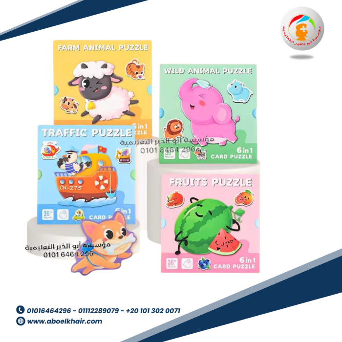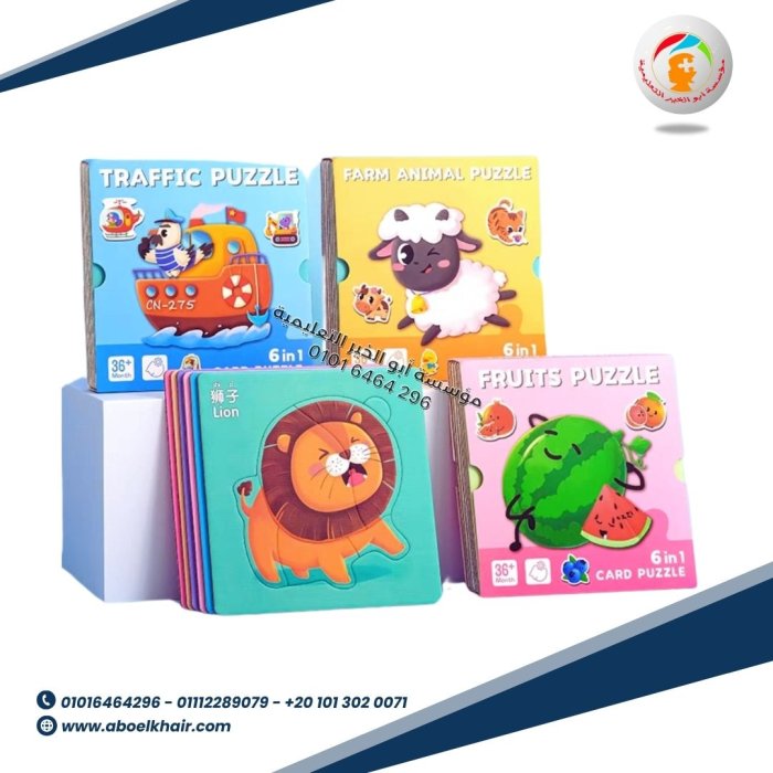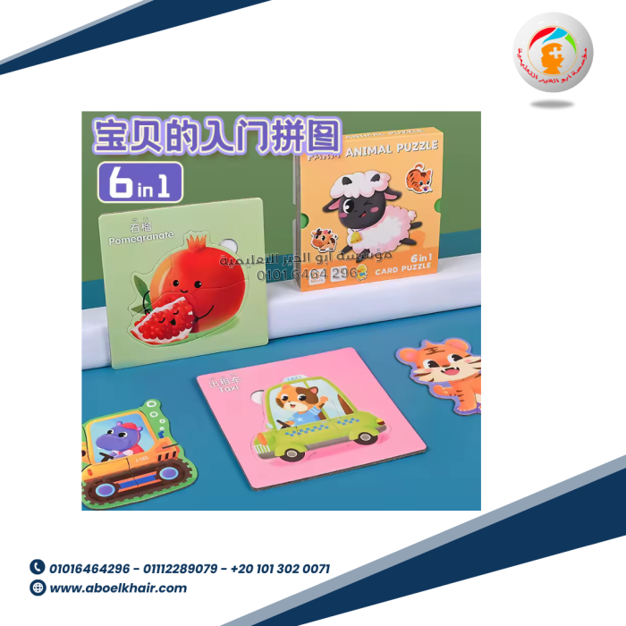 عبارة عن باكت به 6 كروت بازل و اسفل كل بازل الصورة قابلة للتلوين لزيادة متعة اطفال وتنمية مهارات متعددة لهم في نفس الوقت