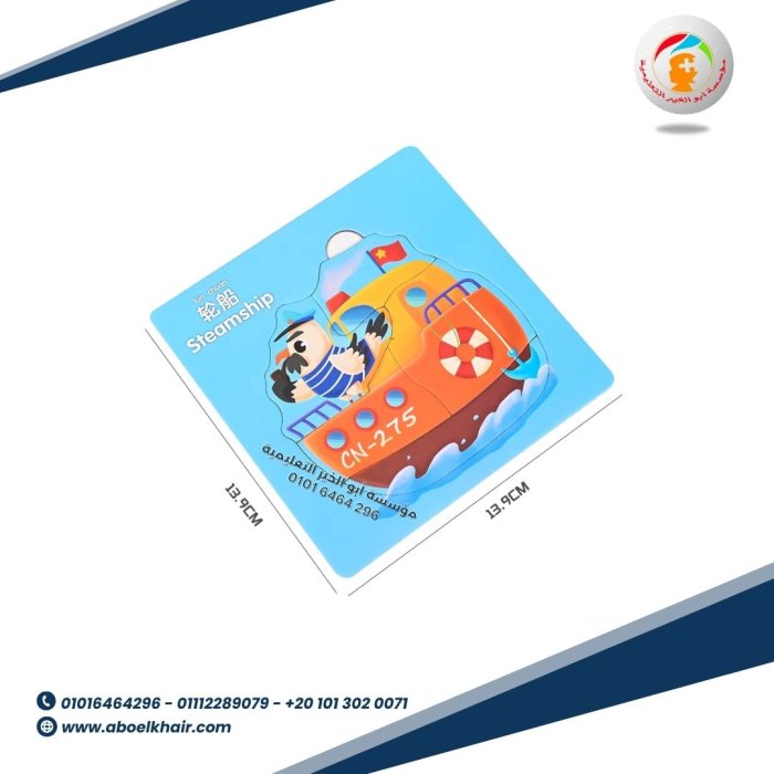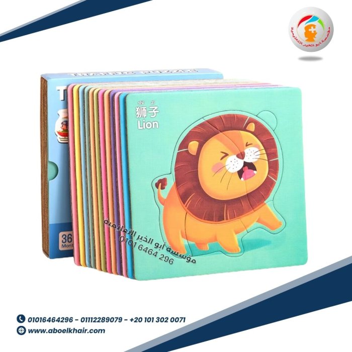 عبارة عن كارت خشبي عالى الجودة بها قطع مجسمة بسيطة سهلة التركيب مع بازل حروف بالعربي اسم شكل البازل