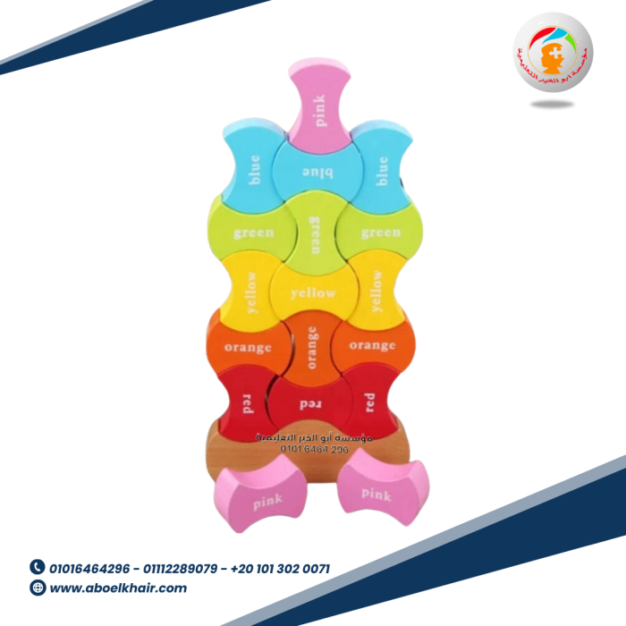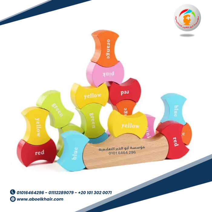 مجموعة مكعبات للتوازن و تعلم الألوان الخشبية هي لعبة تعليمية  مكعبات خشبية، ملونة، سوف تتداخل القطع لتشكل برجًا. الجمع بين القطع – تشكيل لغز خشبي جميل على شكل برج؛ تعلم الألوان –