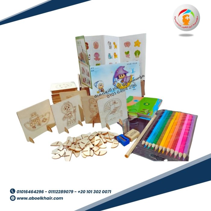 مع كروت 24 كارت مطابقة مختلفة في المراحل من الاسهل الي الاصعب من خلال المطابقة بأشكال مختلفة والمطلوب من الطفل تكوين أشكال من القطع مختلفة الأشكال والأحجام والألوان