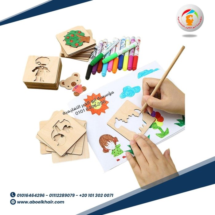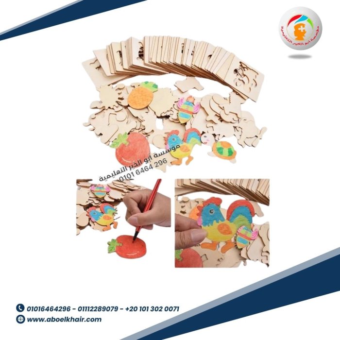 🖌️يقوم الاطفال بملء الرسومات الخشبية بالوانهم المفضلة و يستطيع تفريغ الشكل و إعادة رسمه في اسكتش الرسم الابيض و اعادة التلوين