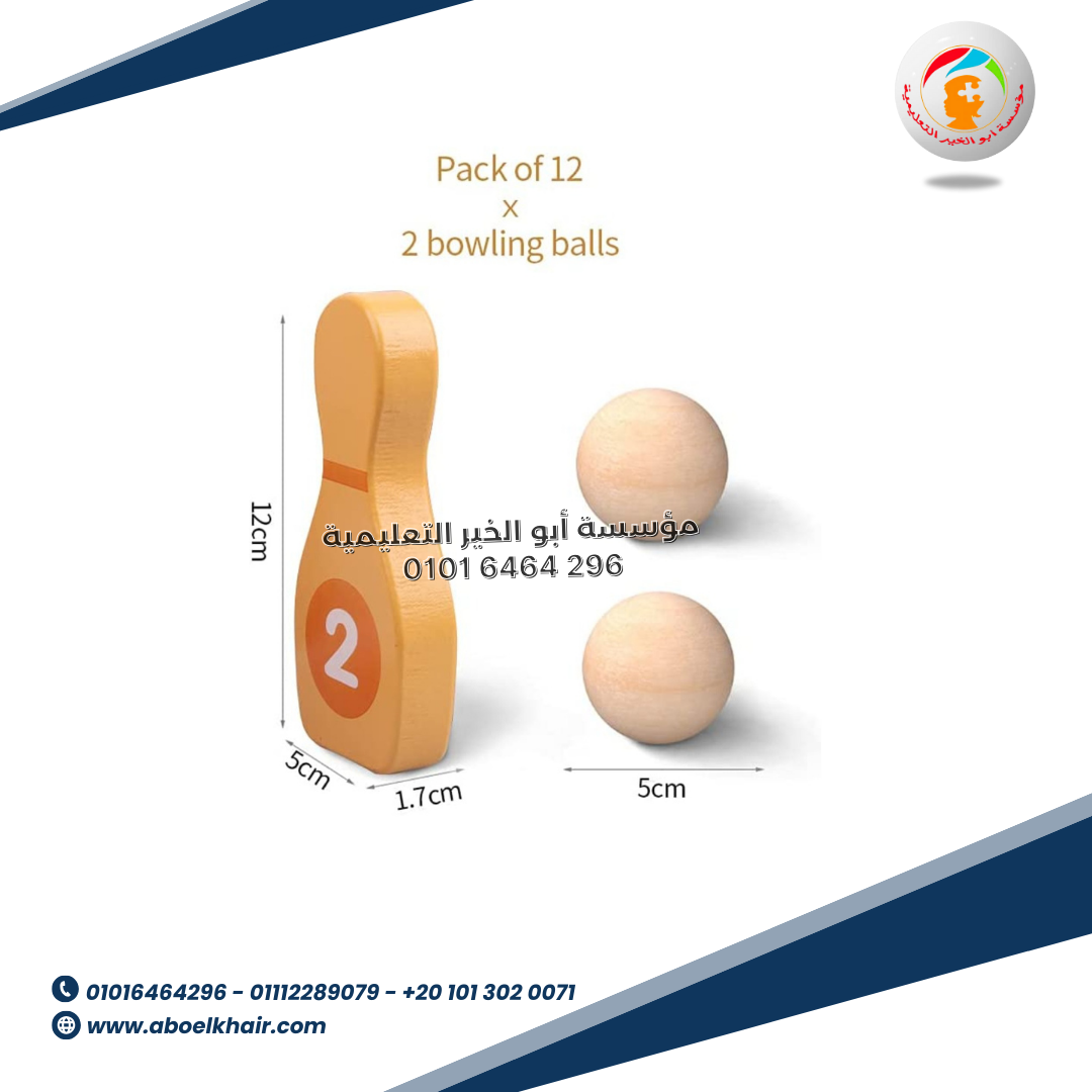 12بولينج خشب 🎳 بألوان مختلفة + 2 كورة خشب