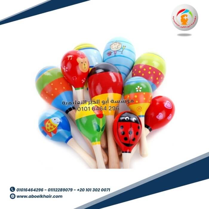 جلاجل بصوت خشخشة رمال  خافتة الصوت من الخشب الناعم الخفيف ملونة مقاس 12 سنتيمتر للأطفال