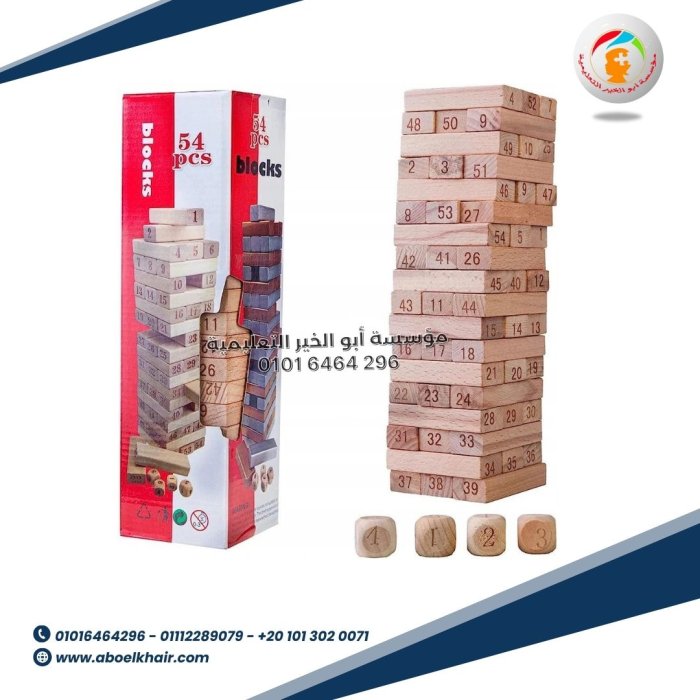 الحجم الكبير 54 قطعة مرقمة و4 حجر نرد خشب
