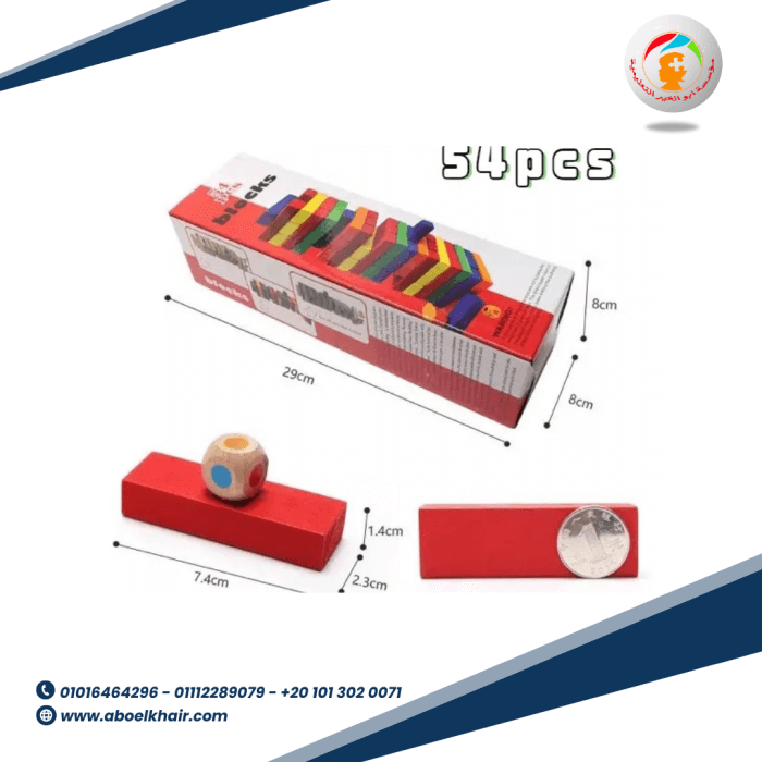 الحجم الكبير 54 قطعة ملونة و2حجر نرد خشب