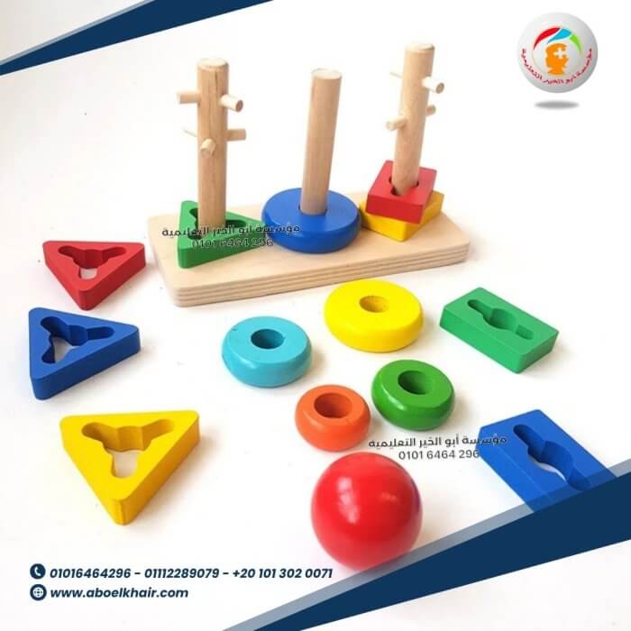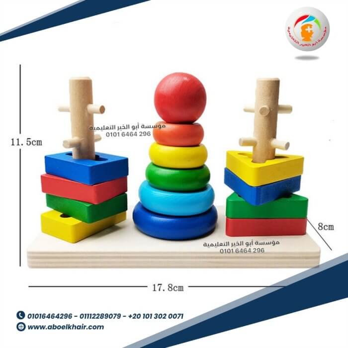 • تطوير التنسيق بين اليد والعين والمهارات الحركية الدقيقة – يساعد الإمساك بالقطع ووضعها على الأعمدة على تحسين البراعة ودقة الحركة.