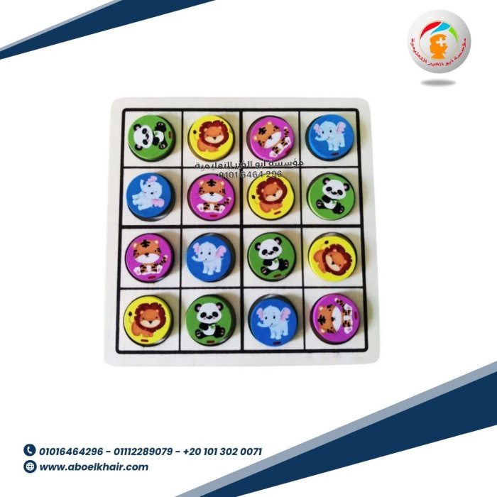 قواعد لعبة سودوكو للأطفال الحيوانات: يتم وضع القطع الخشبية المستديرة مع الرسوم التوضيحية للحيوانات على لوحة اللعبة، الهدف من اللعبة هو أن ينجح الصغار في وضع القطع بحيث لا يتكرر أي حيوان على نفس العمود أو الخط. بالنسبة لهذه اللعبة،
