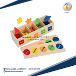 🔶وهنا يبدأ الطفل في مطابقة الاشكال المجسمة بالاشكال المطبوعة علي الصندوق من خلال فتحات الكافر