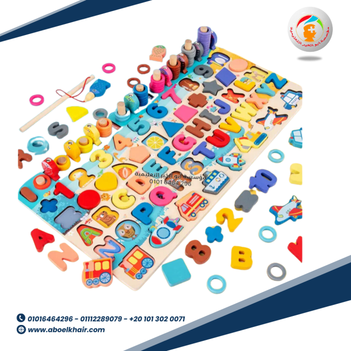 تطابق هندسي 4 عمود بيتم التطابق وفقا لعدد الثقوب فى منتصف الاشكال تستخدم أيضا القطع الخشبية فى تكوين اشكال مختلفة كما موضح فى الصور الوان جذابة لشد انتباه الطفل خشب عالى الجودة