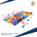 لعبة تعليمية تمثيلية تساعد الأطفال على استكشاف الأشكال الهندسية والألوان بطريقة تفاعلية وممتعة. تحتوي اللعبة على أعمدة خشبية ملونة مع أشكال هندسية متنوعة مثل المربعات والمستطيلات والمثلثات والدوائر.