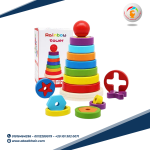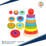 لعبة تعليمية تمثيلية تساعد الأطفال على استكشاف الأشكال الهندسية والألوان بطريقة تفاعلية وممتعة. تحتوي اللعبة على أعمدة خشبية ملونة مع أشكال هندسية متنوعة مثل المربعات والمستطيلات والمثلثات والدوائر.