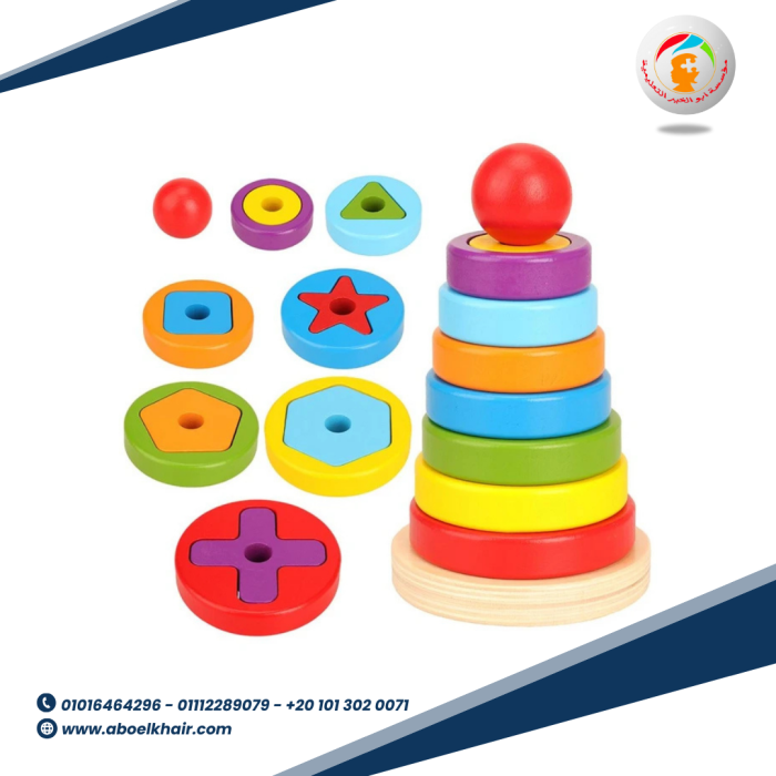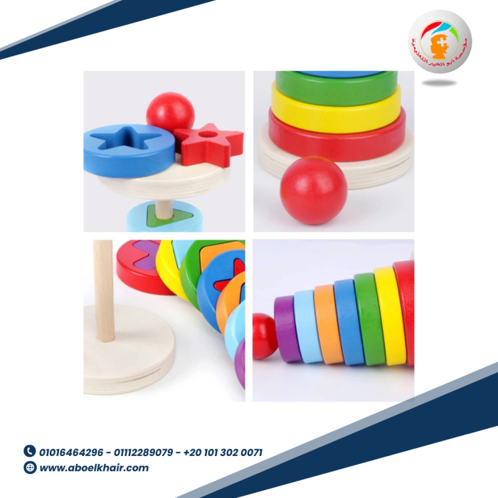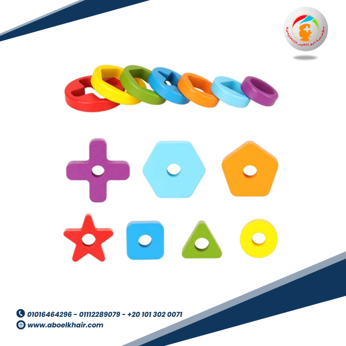 تطابق هندسي 4 عمود بيتم التطابق وفقا لعدد الثقوب فى منتصف الاشكال تستخدم أيضا القطع الخشبية فى تكوين اشكال مختلفة كما موضح فى الصور الوان جذابة لشد انتباه الطفل خشب عالى الجودة