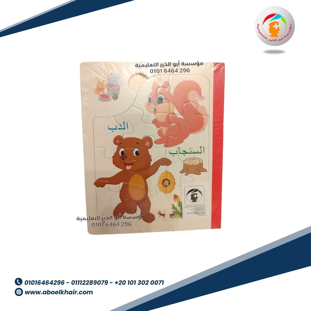 يتكون من صفحات خشبية بازل لاشكال مختلفة مع اسمها بالعربي