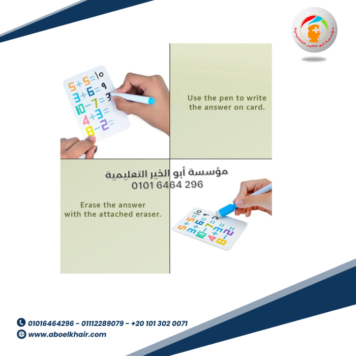 🌼يمكنك مسح البطاقات الحسابية للاستخدام المتكرر بعد الكتابة بقلم مائي.