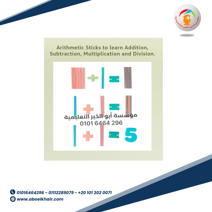تساعد الطفل علي تعلم الأرقام من خلال وتحقيقها بالعصي الملونة والقيام بالعمليات الحسابية البسيطة باستخدام الأرقام  والعصي لمساعدة الطفل على فهم العمليات الحسابية بشكل ملموس
