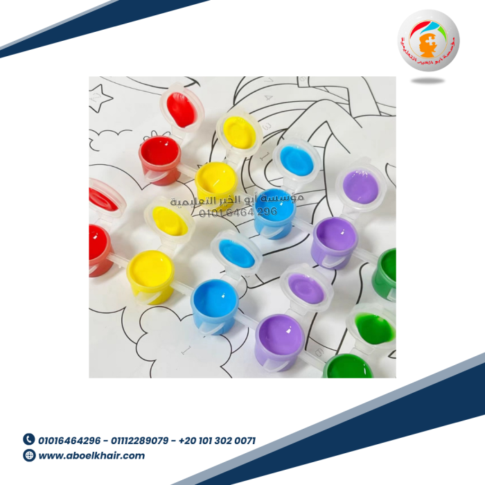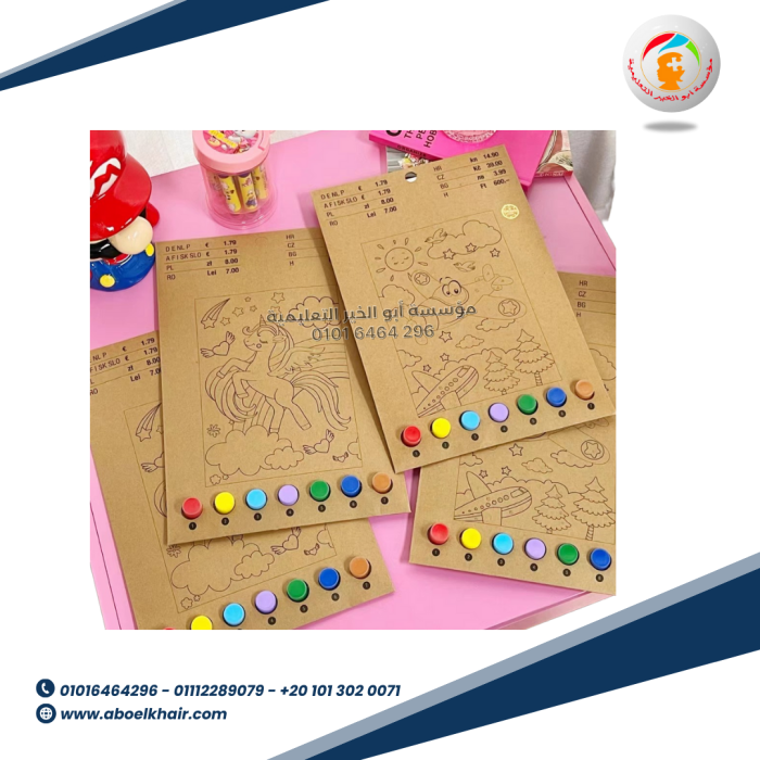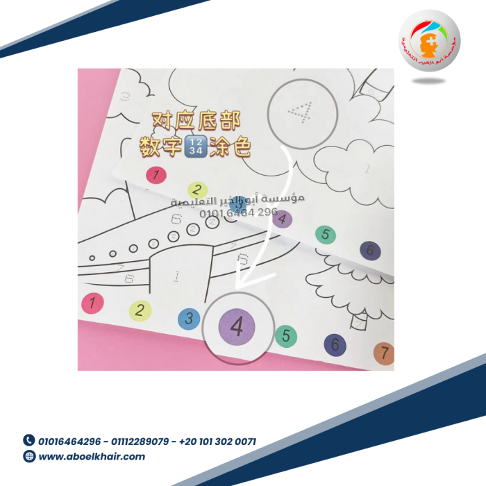 • مع ترقيم كل لون بالمكان المفترض يتم تلوينه بهذا اللون ليسهل علي الطفل معرفة تنسيق الالوان