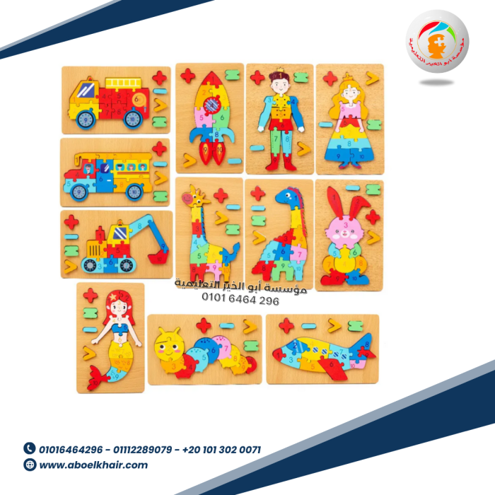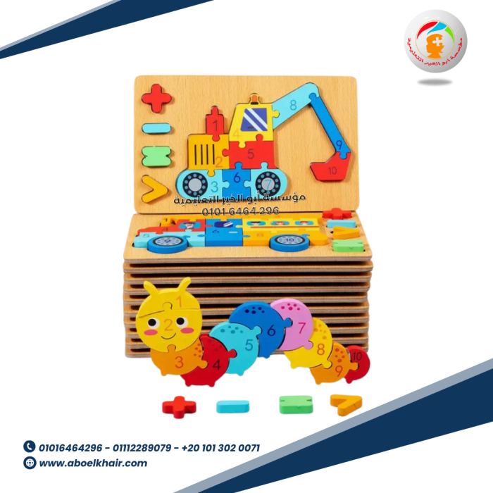 مميز البازل المجسم برموز حسابية لانشاء عمليات حسابية جمع و طرح من خلال الارقام الخلفية لكل بازل خشبي