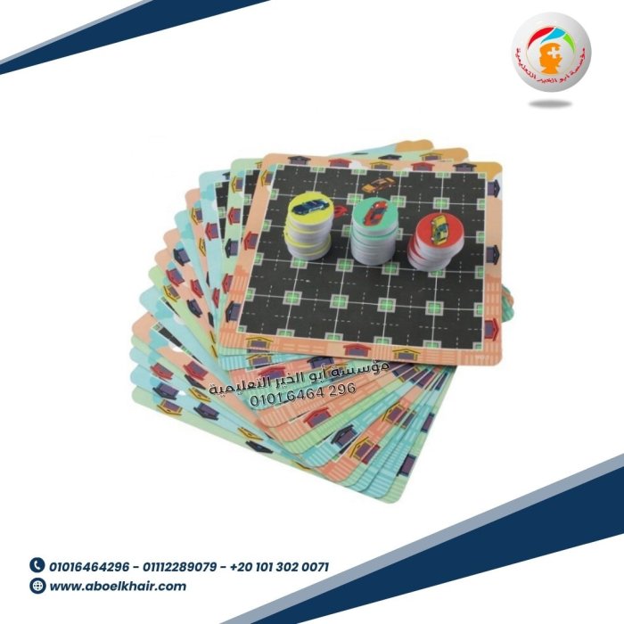 مع كروت 24 كارت مطابقة مختلفة في المراحل من الاسهل الي الاصعب من خلال المطابقة بأشكال مختلفة والمطلوب من الطفل تكوين أشكال من القطع مختلفة الأشكال والأحجام والألوان