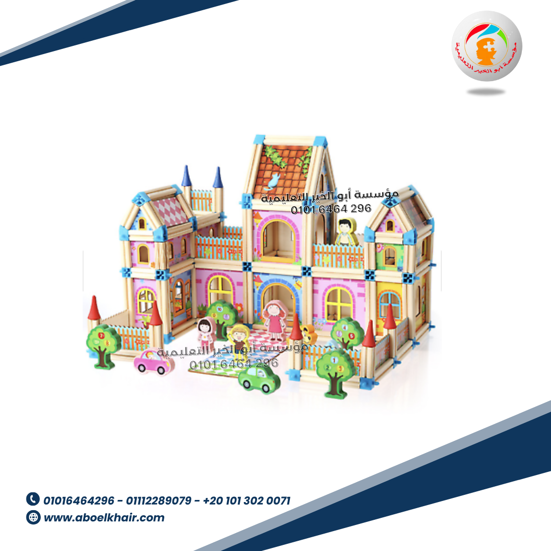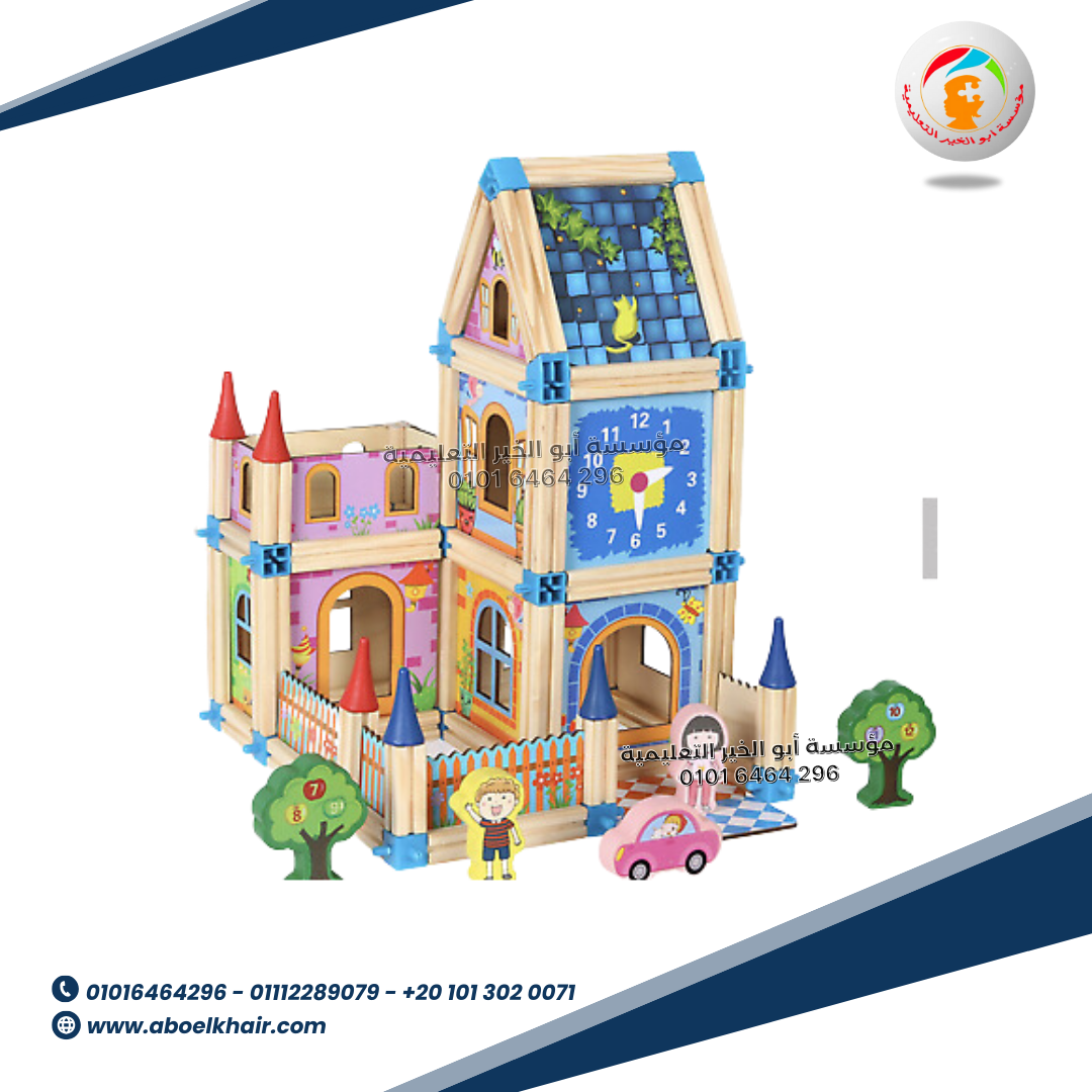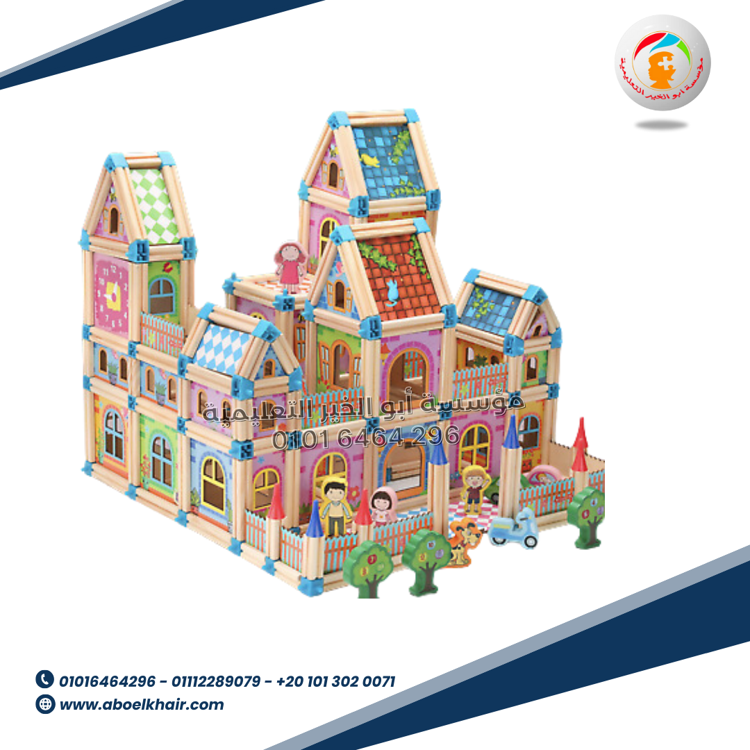 جسمات بناء البيت جامبو خشبية بألوان زاهية و جميلة تتكون من ٢٦٨ قطعة