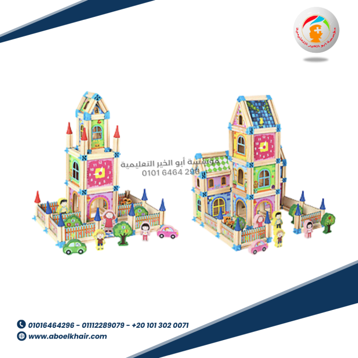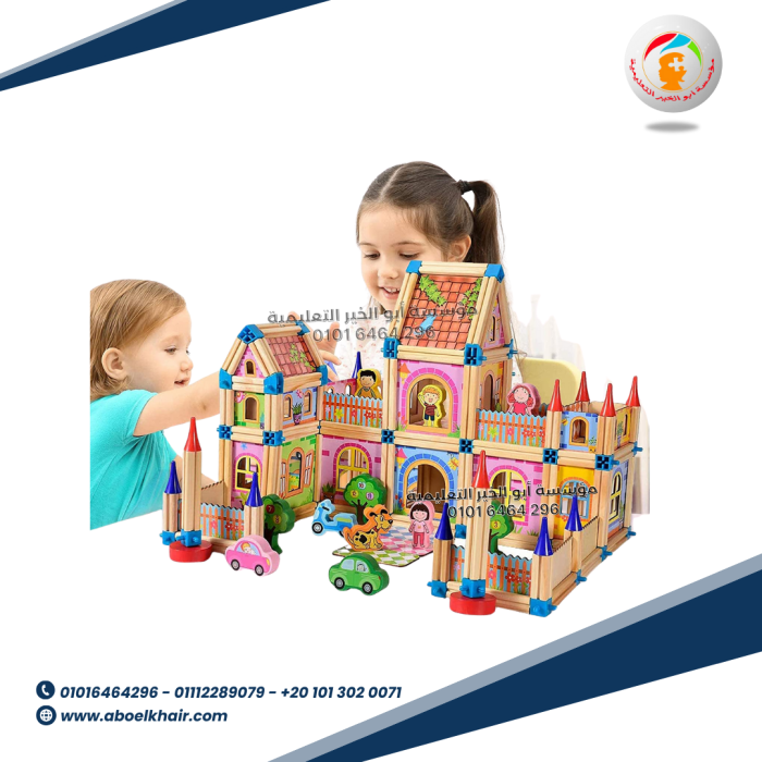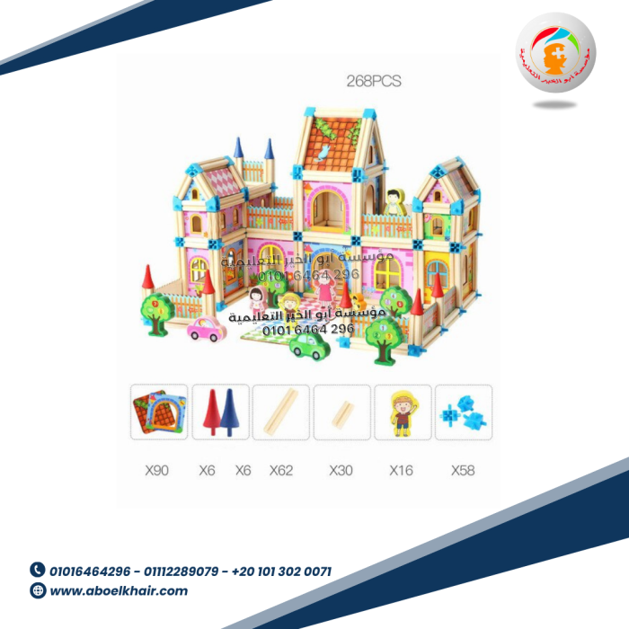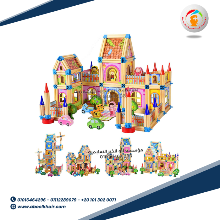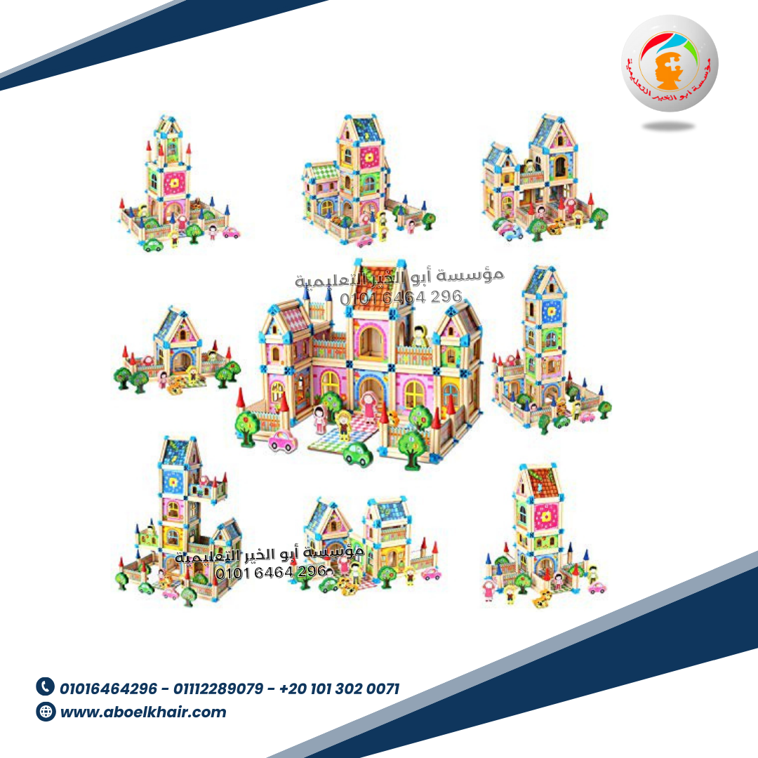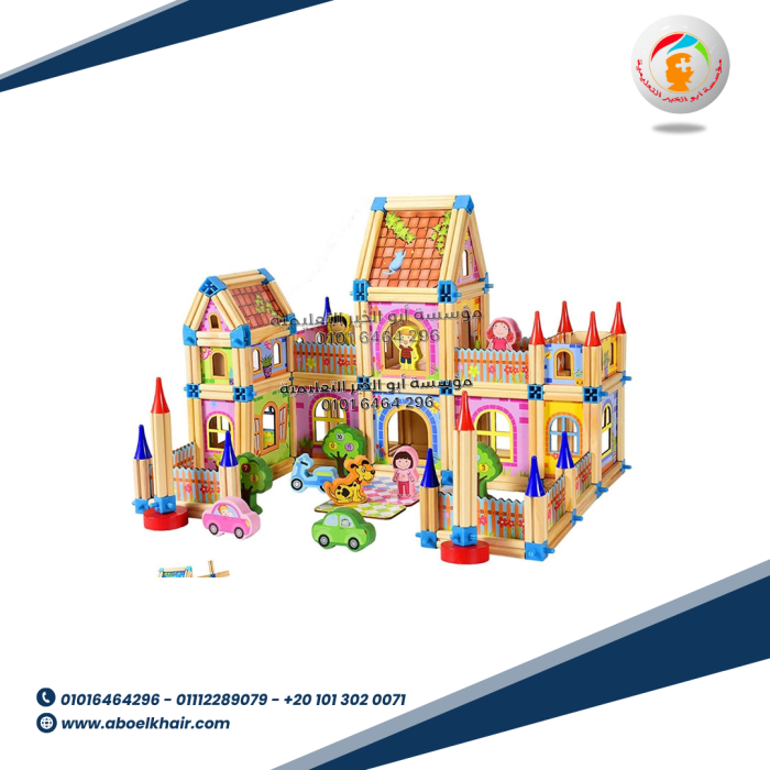 جسمات بناء البيت جامبو خشبية بألوان زاهية و جميلة تتكون من ٢٦٨ قطعة