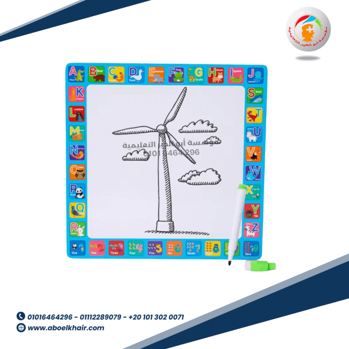 و ايضا سبورة يستطيع الطفل الكتابة و الرسم باستخدام خيالة