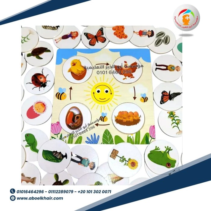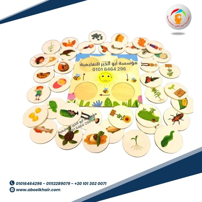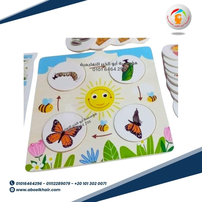 عبارة عن بازل خشبي عن مراحل جميع الكائنات بصورة كل مرحلة التي يجب ان يعرفها الطفل في سن الاستكشاف