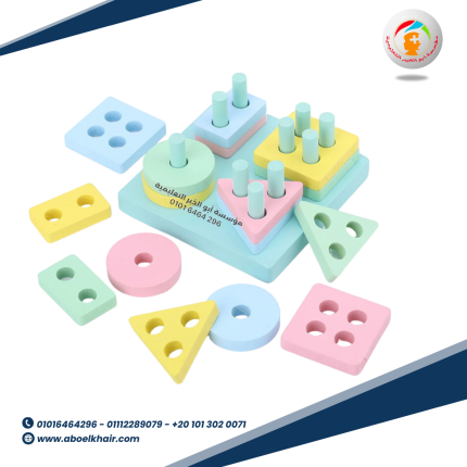 تطابق هندسي 4 عمود بيتم التطابق وفقا لعدد الثقوب فى منتصف الاشكال تستخدم أيضا القطع الخشبية فى تكوين اشكال مختلفة كما موضح فى الصور الوان جذابة لشد انتباه الطفل خشب عالى الجودة