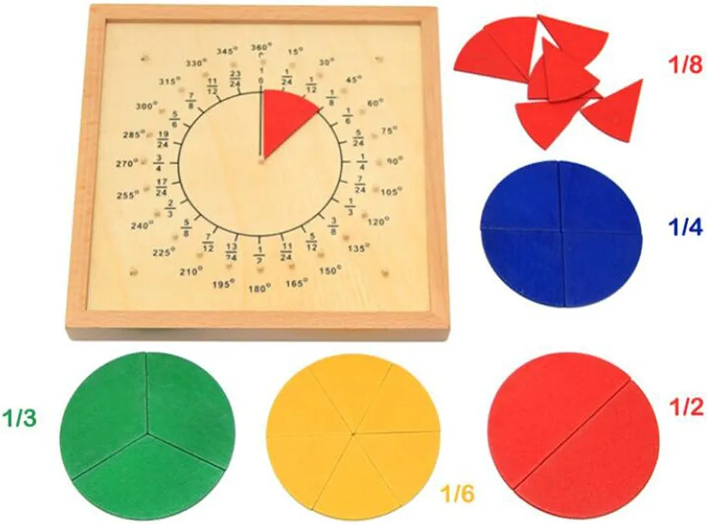 تجعلها شائعة لدى الأطفال. مع هذه الوسائل التعليمية، يتعلم الأطفال مفهوم الكسور والدرجات في الرياضيات.