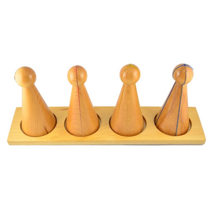 تتيح الأسطوانات بدون مقابض للأطفال تجربة اختلافات الارتفاع والعرض، وتساعدهم على تحسين مهارات التنسيق والتركيز والاستقلالية وحل المشكلات من خلال الملاحظة. تحتوي كل مجموعة على 4 مجموعات من 10 أسطوانات، كل منها متفاوتة في الارتفاع والقطر. توجد كل مجموعة في صندوق خشبي منفصل بغطاء مطلي بنفس لون الأسطوانات: الأحمر والأخضر والأصفر والأزرق. العمر 3:6