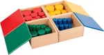 توجد كل مجموعة في صندوق خشبي منفصل بغطاء مطلي بنفس لون الأسطوانات: الأحمر والأخضر والأصفر والأزرق.