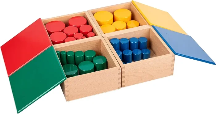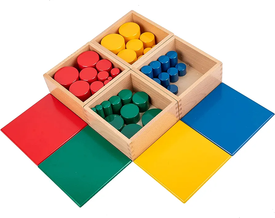 تتيح الأسطوانات بدون مقابض للأطفال تجربة اختلافات الارتفاع والعرض، وتساعدهم على تحسين مهارات التنسيق والتركيز والاستقلالية وحل المشكلات من خلال الملاحظة.
