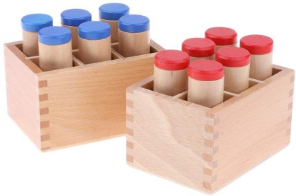 مجموعتان من ست أسطوانات خشبية محكمة الغلق تُصدر صوتًا مميزًا عند هزها. تتدرج الأسطوانات من الهادئ إلى العالي، ولكل أسطوانة غطاء أحمر أو أزرق، داخل صندوق خشبي بغطاء أحمر أو أزرق مطابق. تساعد أسطوانات الصوت على تحسين حاسة السمع لدى الطفل، وتحسين التركيز والتنسيق والاستقلالية ومهارات حل المشكلات. العمر 6:3
