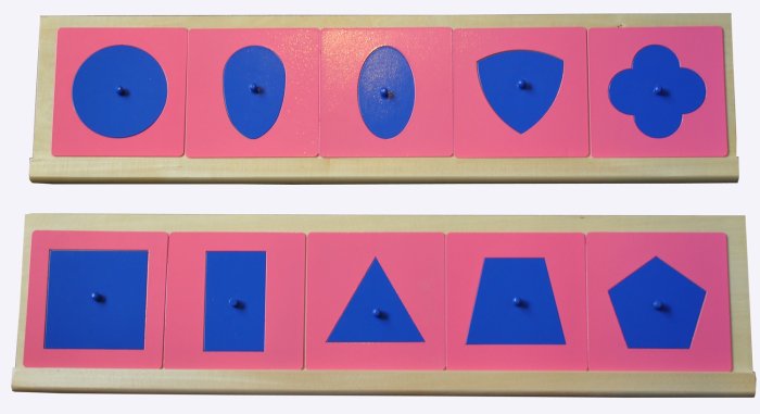 أداة تعليمية مميزة مصممة لإعداد الأطفال للكتابة. تتكون هذه الإطارات من عشرة إطارات معدنية وردية بأشكال هندسية مختلفة، وتساعد على تطوير المهارات الحركية الدقيقة والتحكم بالقلم الرصاص. يتم اختيار كل شكل، من المثلثات إلى رباعيات الفصوص، بعناية لتمثيل أنواع الخطوط المختلفة المستخدمة في الأبجدية الإنجليزية. يتم تقديم هذه الأدوات عادةً في سن الثالثة تقريبًا، وهي ليست أساسية للكتابة اليدوية فحسب، بل أيضًا لتعلم الانضباط والتركيز اللازمين للنجاح الأكاديمي.