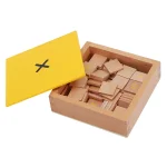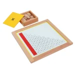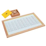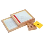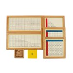 بطاقات أرقام خشبية صغيرة (من ١ إلى ٩٠٠٠) معروضة في صندوق خشبي مفتوح. بطاقات أرقام كبيرة (من ١ إلى ٣٠٠٠) للاستخدام مع مادة الخرزة الذهبية في إجراء العمليات الحسابية العمر 3.5 :6