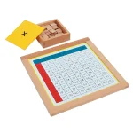 تُساعد لوحة المائة الطفل على إتقان الترتيب العددي من ١ إلى ١٠٠، وتُعرّفه أيضًا على الأنماط العددية. تتضمن لوحة خشبية زرقاء مُؤطرة تحتوي على ١٠٠ مربع، وصندوقًا خشبيًا مُقسّمًا إلى قسمين يحتويان على قطع خشبية صغيرة من ١ إلى ١٠٠. العمر 4 : 6