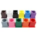 تعتبر حاملات أقلام الرصاص طريقة رائعة لتنظيم الأقلام وعرضها بطريقة جمالية وعملية. غالبًا ما تتميز هذه الحوامل بمقصورات أو أكواب متعددة، والتي لا تساعد فقط في فرز وتخزين الألوان المختلفة ولكنها أيضًا تشجع الأطفال على تطوير مهاراتهم الحركية الدقيقة وقدراتهم على التعرف على الألوان. عادة ما تكون مصنوعة من الخشب، مما يعكس تركيز مونتيسوري على المواد الطبيعية والمتينة الآمنة للأطفال والبيئة.