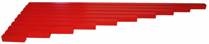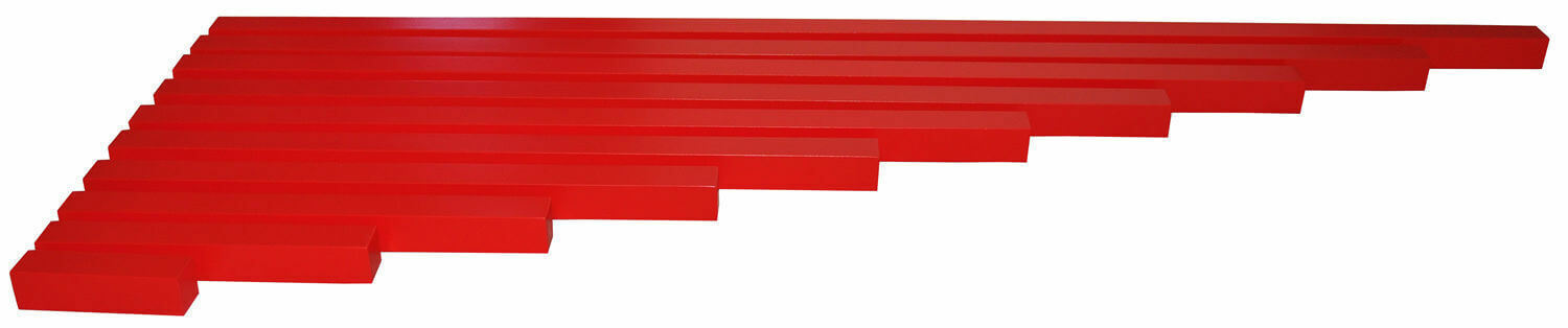 لعصي الحمراء هي اداه حسية  للأطفال لتجربة أبعاد من 1 سم3 إلى 10 سم3، مما يسمح لهم بفهم عواقب هذا الاضطراب، ويساعدهم أيضًا على تحسين مهارات التنسيق والتركيز والاستقلالية وحل المشكلات من خلال الملاحظة. يتضمن 10 قضبان خشبية حمراء طويلة صلبة، متساوية في الارتفاع والعرض (2.5 سم)، تتدرج في الطول من 10 سم إلى متر واحد.