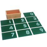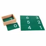 عشرة أرقام من ٠ إلى ٩ على ورق صنفرة على ألواح خضراء، ووُضعت في صندوق خشبي. يهدف هذا المنتج إلى تعليم الطفل الرموز المكتوبة للأرقام من ١ إلى ١٠.