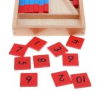 عشرة أرقام من ٠ إلى ٩ مطبوعة على ورق صنفرة على مسطرة خضراء. يهدف هذا المنتج إلى تعليم الطفل الرموز المكتوبة للأرقام من ١ إلى ١٠.
