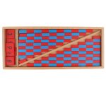يتم تقديم القضبان في صندوق خشبي يتضمن مجموعة واحدة من البلاط الخشبي ذو الأرقام 1-10.