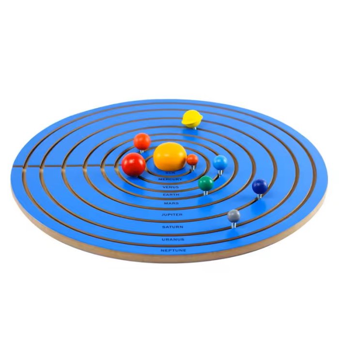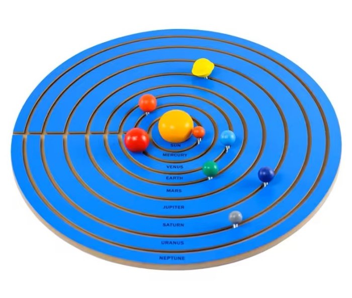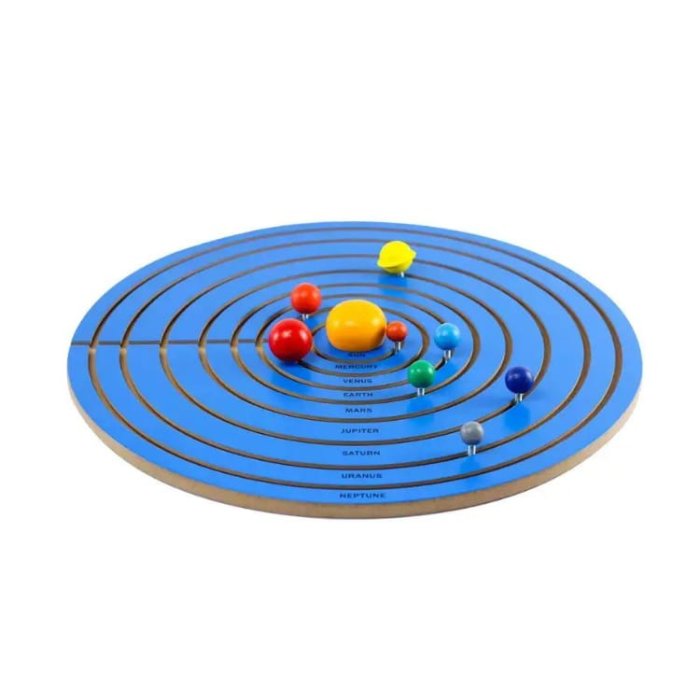 تالنظام الشمسي طريقة تفاعلية أكثر من أحجية النظام الشمسي، حيث تُثبّت الشمس في المركز، وتدور حولها ثمانية كواكب (وليس تسعة). تُثبّت الكواكب في مساراتها بواسطة برغي من الأسفل، يُمكن إزالته بسهولة باستخدام منافذ الوصول أسفل اللوحة.