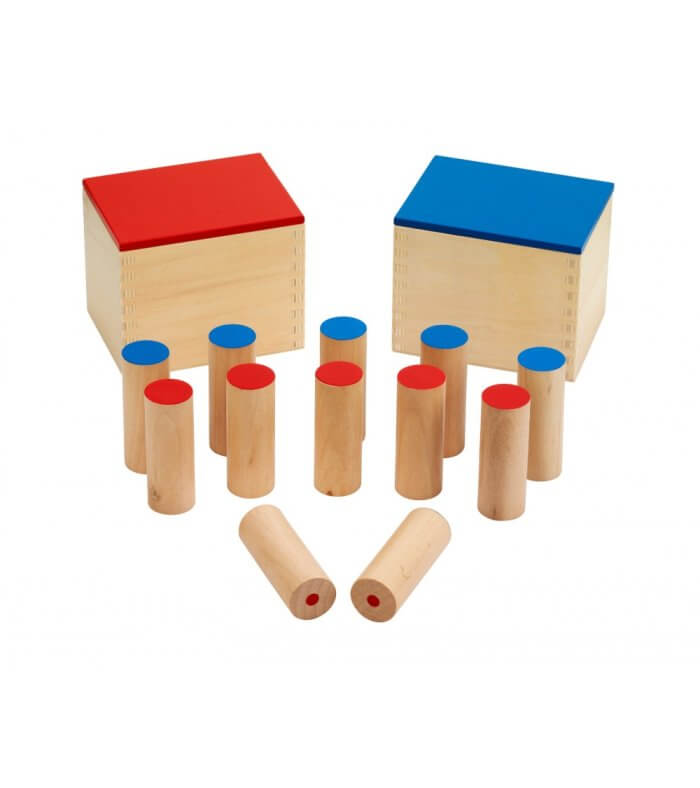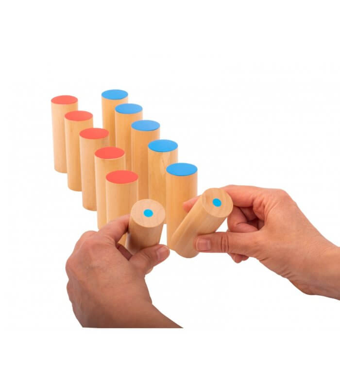 مجموعتان من ست أسطوانات خشبية محكمة الغلق تُصدر صوتًا مميزًا عند هزها. تتدرج الأسطوانات من الهادئ إلى العالي، ولكل أسطوانة غطاء أحمر أو أزرق، داخل صندوق خشبي بغطاء أحمر أو أزرق مطابق. تساعد أسطوانات الصوت على تحسين حاسة السمع لدى الطفل، وتحسين التركيز والتنسيق والاستقلالية ومهارات حل المشكلات.