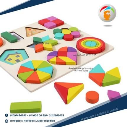تساعد علي حل المشكلات . تقدم للطفل تحدي بأضافة كل شكل هندسي في مكانه المناسب