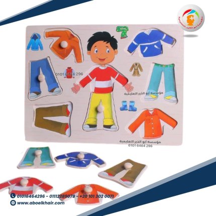 عبارة عن كارت خشبي عالى الجودة بها قطع مجسمة بسيطة سهلة التركيب مع بازل حروف بالعربي اسم شكل البازل