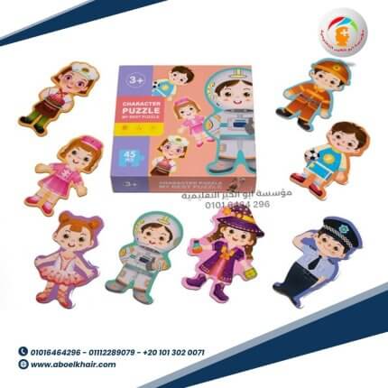 عبارة عن كارت خشبي عالى الجودة بها قطع مجسمة بسيطة سهلة التركيب مع بازل حروف اسم شكل البازل