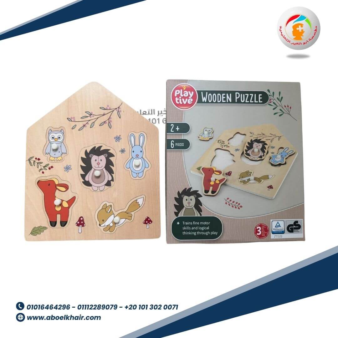 بازل 6 قطع بمقبض خشبي للأطفال من عمر سنتين فما فوق اشكال حيوانات لتنمية المهارات الحركية لليد